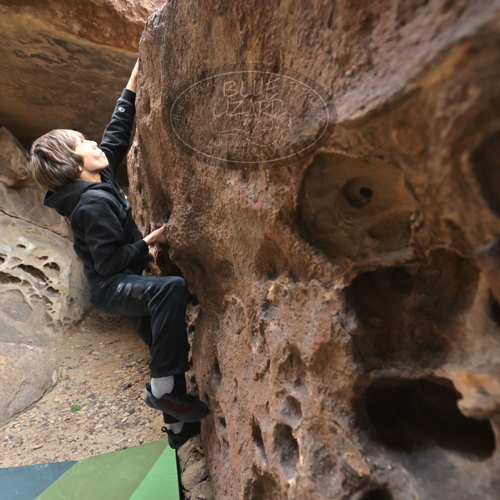 Blue Lizard Climbing and Yoga Hueco Tanks guiding on December 30, 2021, with Alastair, Callum, Chris, Giovanna, and Michael |