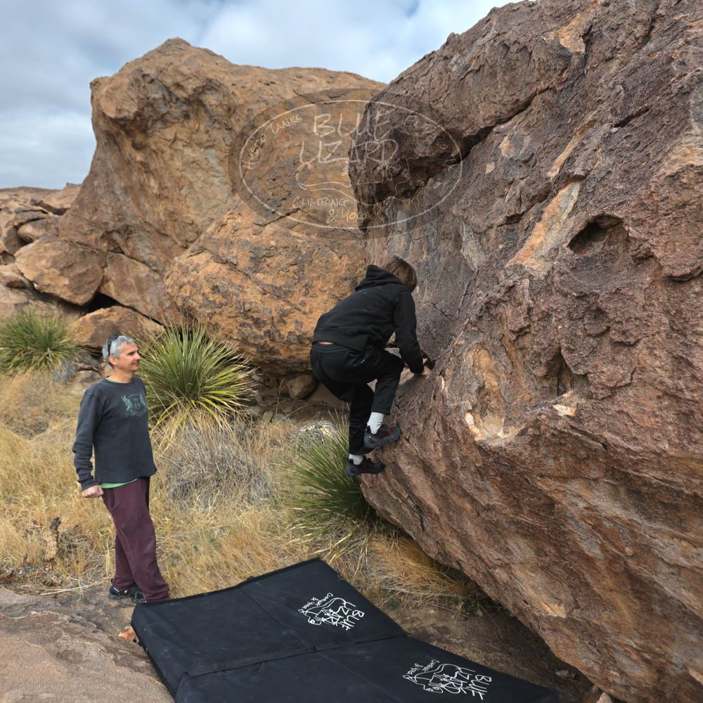 Blue Lizard Climbing and Yoga Hueco Tanks guiding on December 30, 2021, with Alastair, Callum, Chris, Giovanna, and Michael |