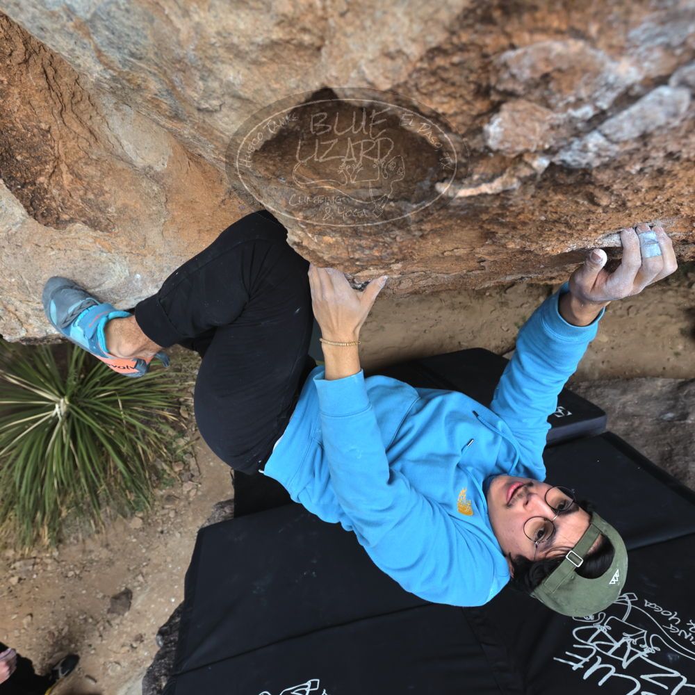 Blue Lizard Climbing and Yoga Hueco Tanks guiding on December 30, 2021, with Alastair, Callum, Chris, Giovanna, and Michael |