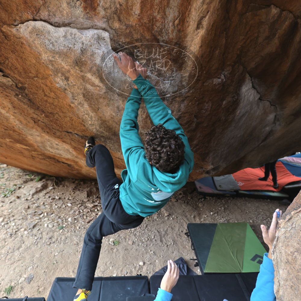Blue Lizard Climbing and Yoga Hueco Tanks guiding on December 30, 2021, with Alastair, Callum, Chris, Giovanna, and Michael |