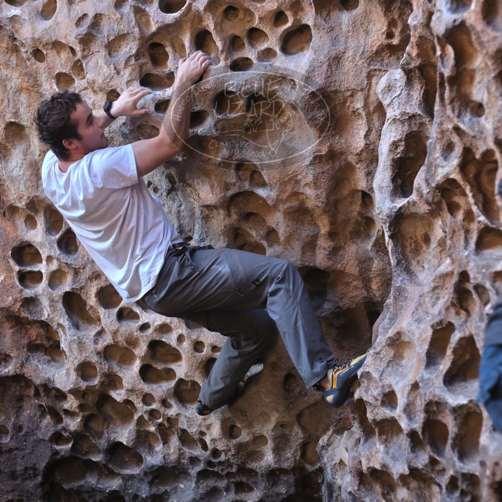 Blue Lizard Climbing and Yoga Hueco Tanks guiding on January 7, 2022, with Anna, John, Mark, and Sue