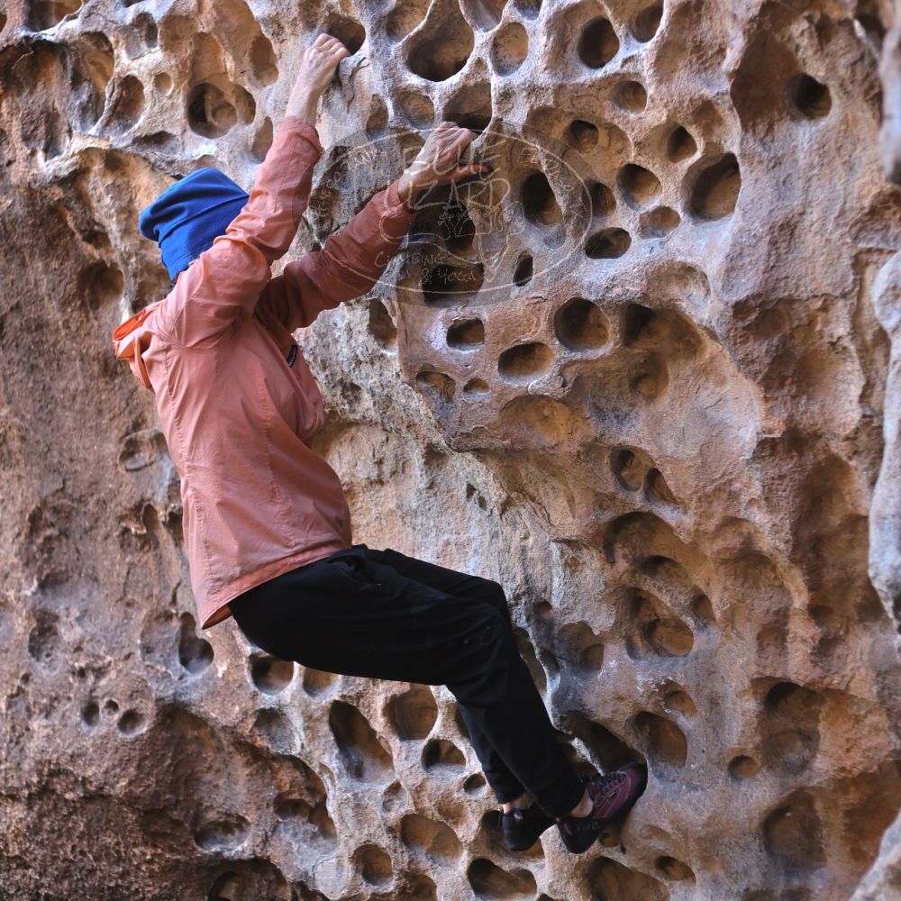 Blue Lizard Climbing and Yoga Hueco Tanks guiding on January 7, 2022, with Anna, John, Mark, and Sue