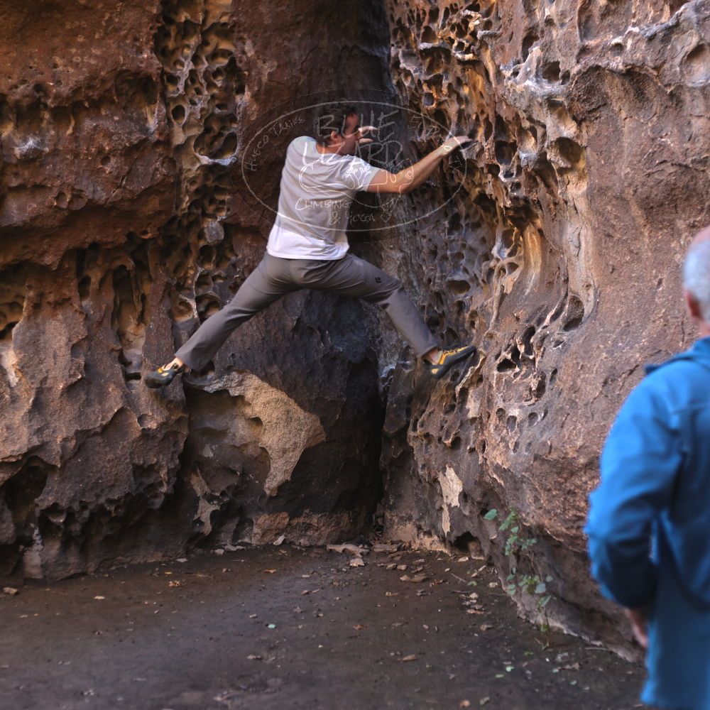 Blue Lizard Climbing and Yoga Hueco Tanks guiding on January 7, 2022, with Anna, John, Mark, and Sue