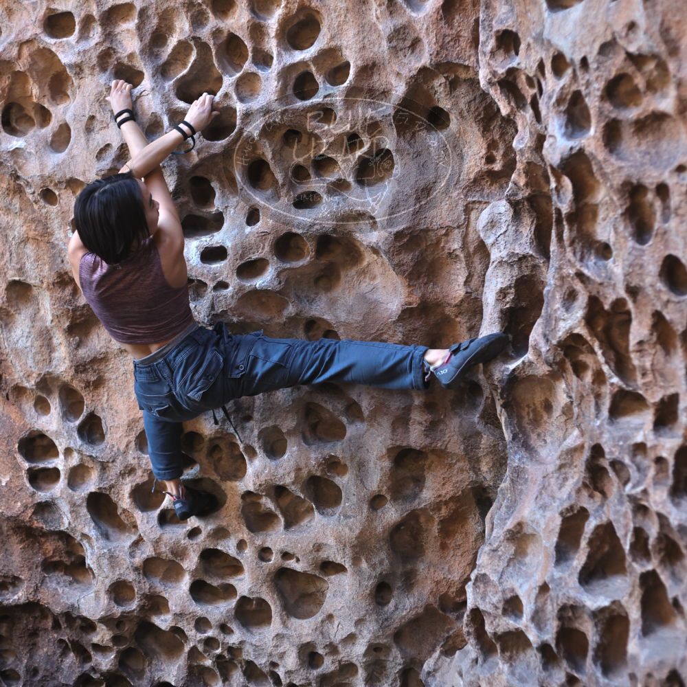 Blue Lizard Climbing and Yoga Hueco Tanks guiding on January 7, 2022, with Anna, John, Mark, and Sue