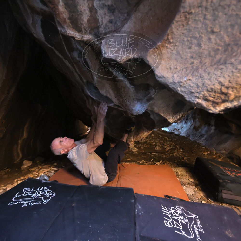 Blue Lizard Climbing and Yoga Hueco Tanks guiding on January 7, 2022, with Anna, John, Mark, and Sue