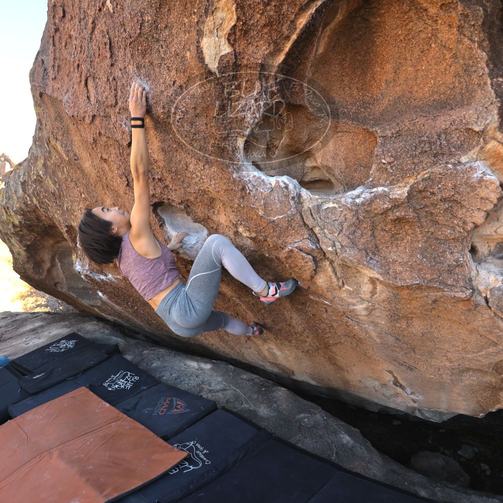 Blue Lizard Climbing and Yoga Hueco Tanks guiding on January 7, 2022, with Anna, John, Mark, and Sue