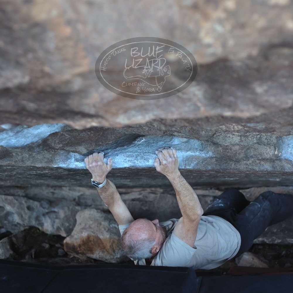 Blue Lizard Climbing and Yoga Hueco Tanks guiding on January 7, 2022, with Anna, John, Mark, and Sue