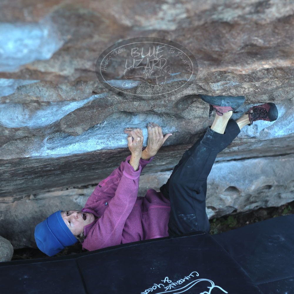 Blue Lizard Climbing and Yoga Hueco Tanks guiding on January 7, 2022, with Anna, John, Mark, and Sue