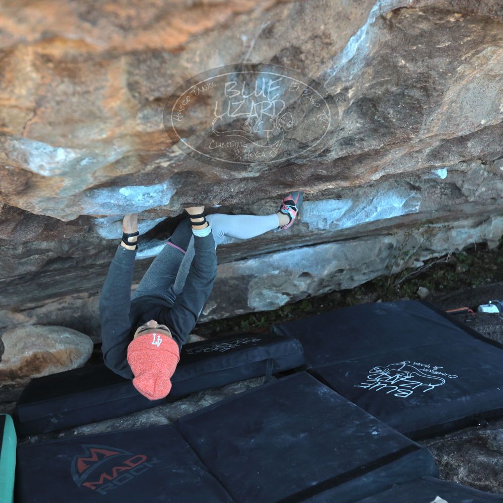Blue Lizard Climbing and Yoga Hueco Tanks guiding on January 7, 2022, with Anna, John, Mark, and Sue