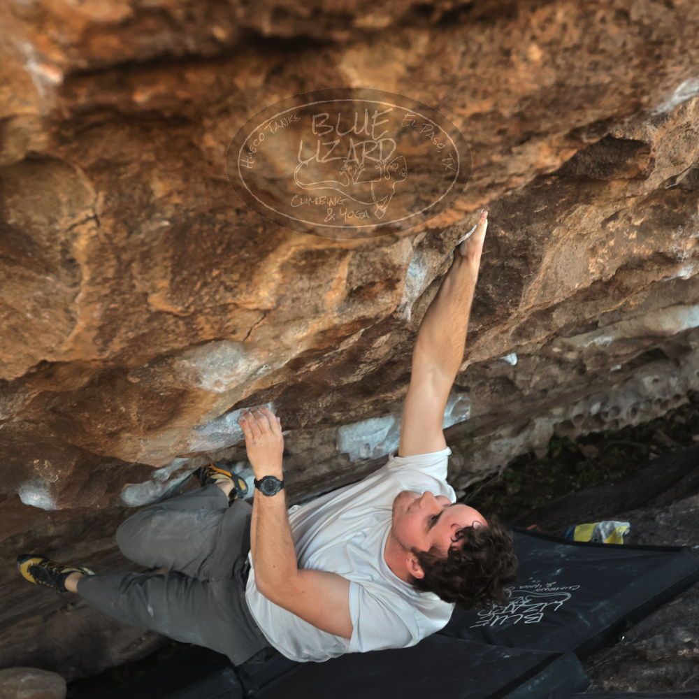 Blue Lizard Climbing and Yoga Hueco Tanks guiding on January 7, 2022, with Anna, John, Mark, and Sue