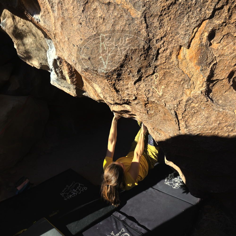 Blue Lizard Climbing and Yoga Hueco Tanks guiding on January 13, 2022, with Matt and Sveta