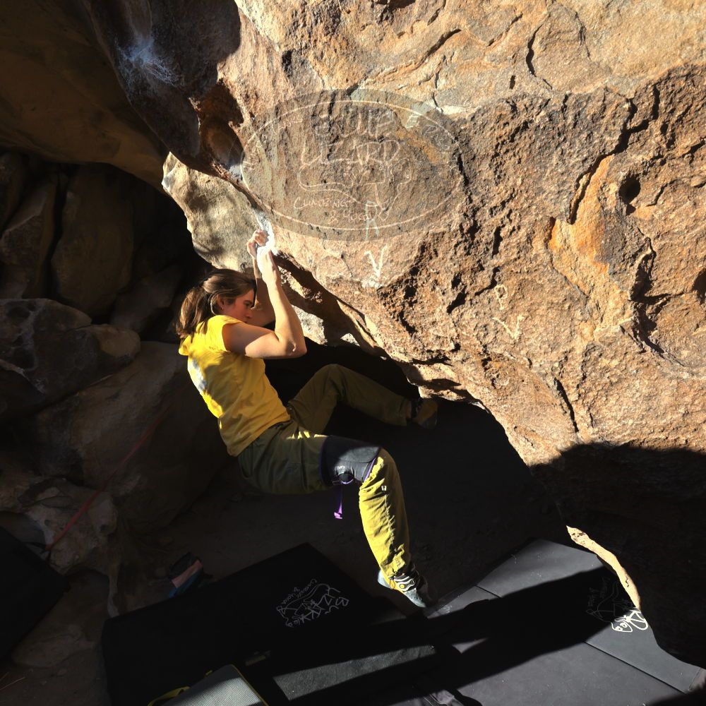 Blue Lizard Climbing and Yoga Hueco Tanks guiding on January 13, 2022, with Matt and Sveta