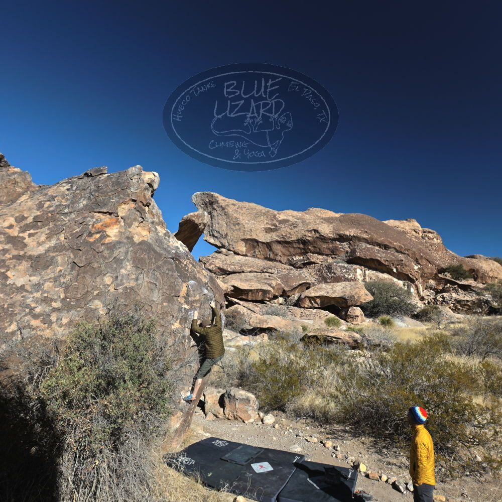 Blue Lizard Climbing and Yoga Hueco Tanks guiding on February 6, 2022, with Bryson and Kayvon