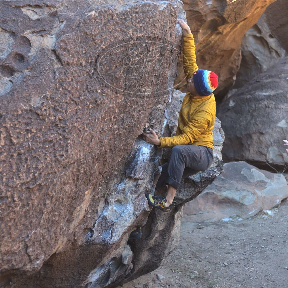 Blue Lizard Climbing and Yoga Hueco Tanks guiding on February 6, 2022, with Bryson and Kayvon