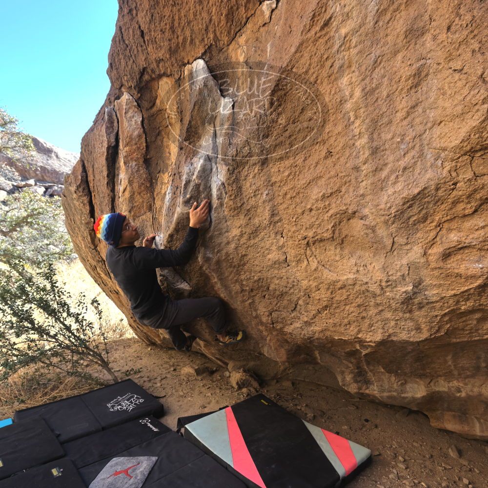 Blue Lizard Climbing and Yoga Hueco Tanks guiding on February 6, 2022, with Bryson and Kayvon