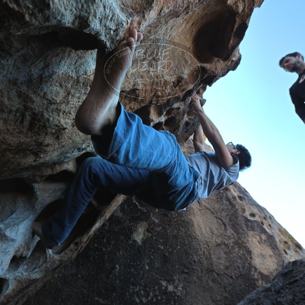 Blue Lizard Climbing and Yoga Hueco Tanks guiding on February 13, 2022, with Evan and Nathaniel