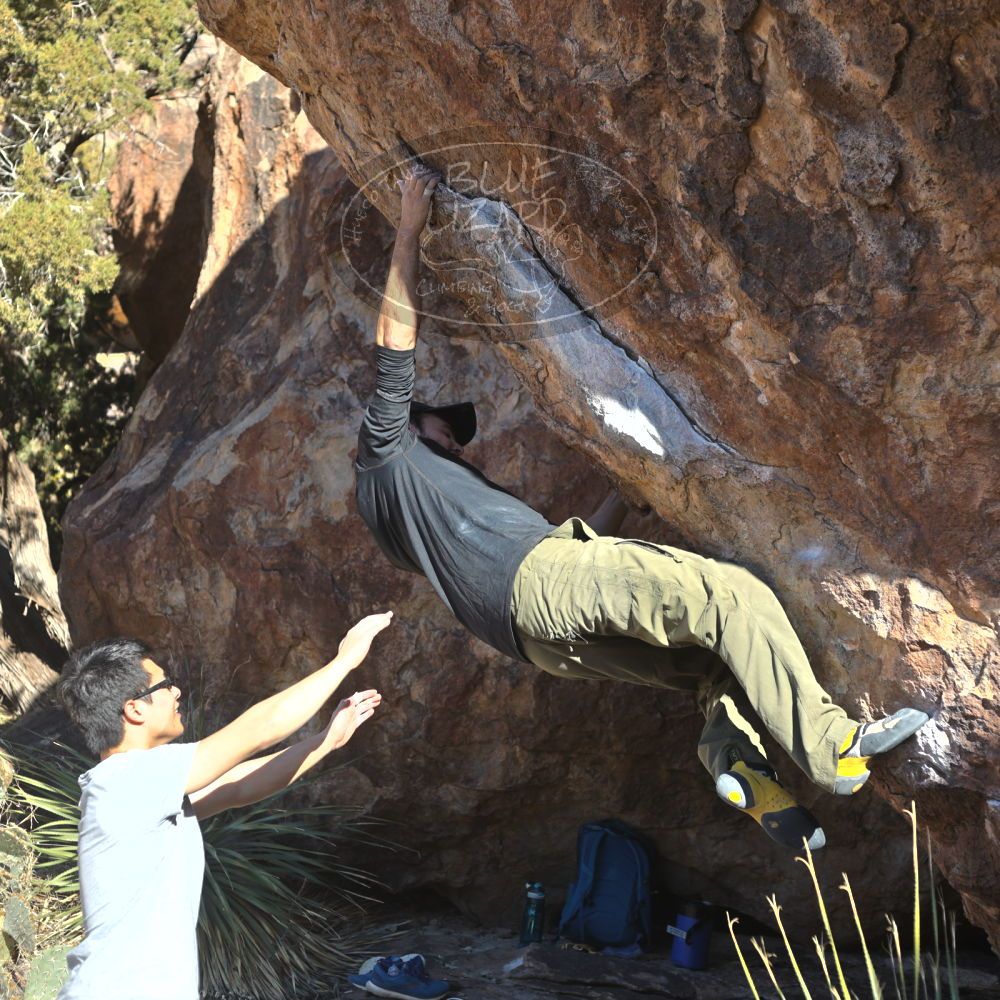 Blue Lizard Climbing and Yoga Hueco Tanks guiding on February 13, 2022, with Evan and Nathaniel
