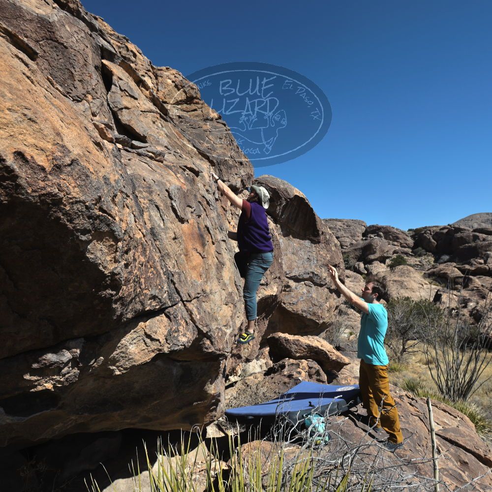 Blue Lizard Climbing and Yoga Hueco Tanks guiding on February 20, 2022, with Cam, Ian, Kamal & Jessica, Mike, and Nick