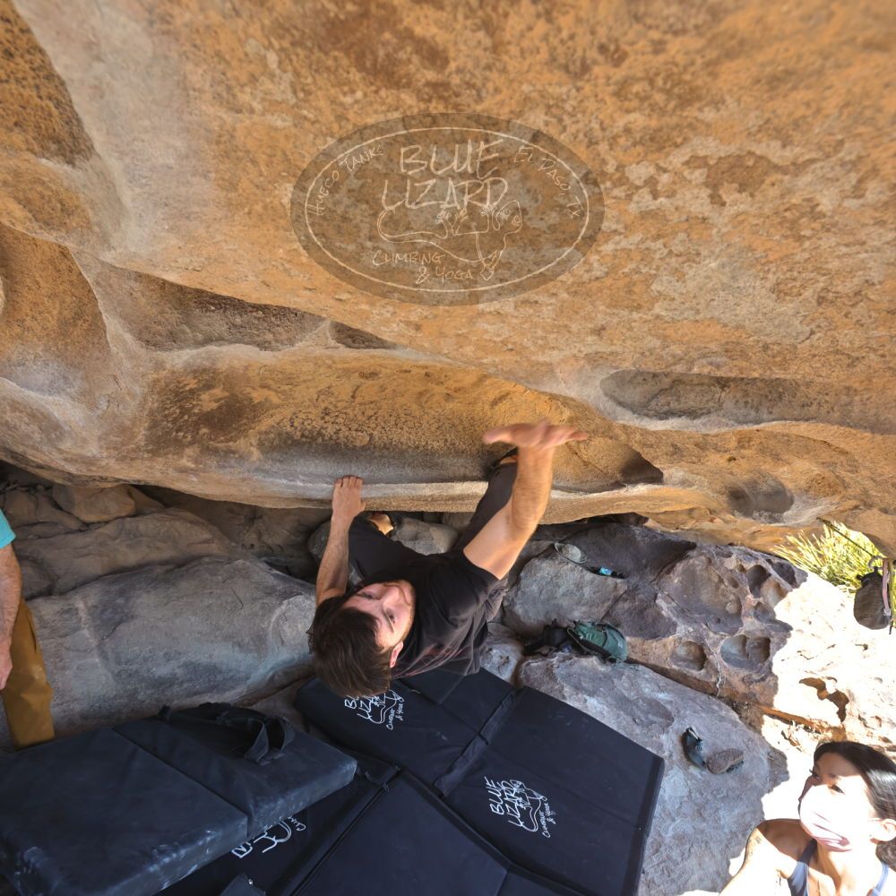 Blue Lizard Climbing and Yoga Hueco Tanks guiding on February 20, 2022, with Cam, Ian, Kamal & Jessica, Mike, and Nick