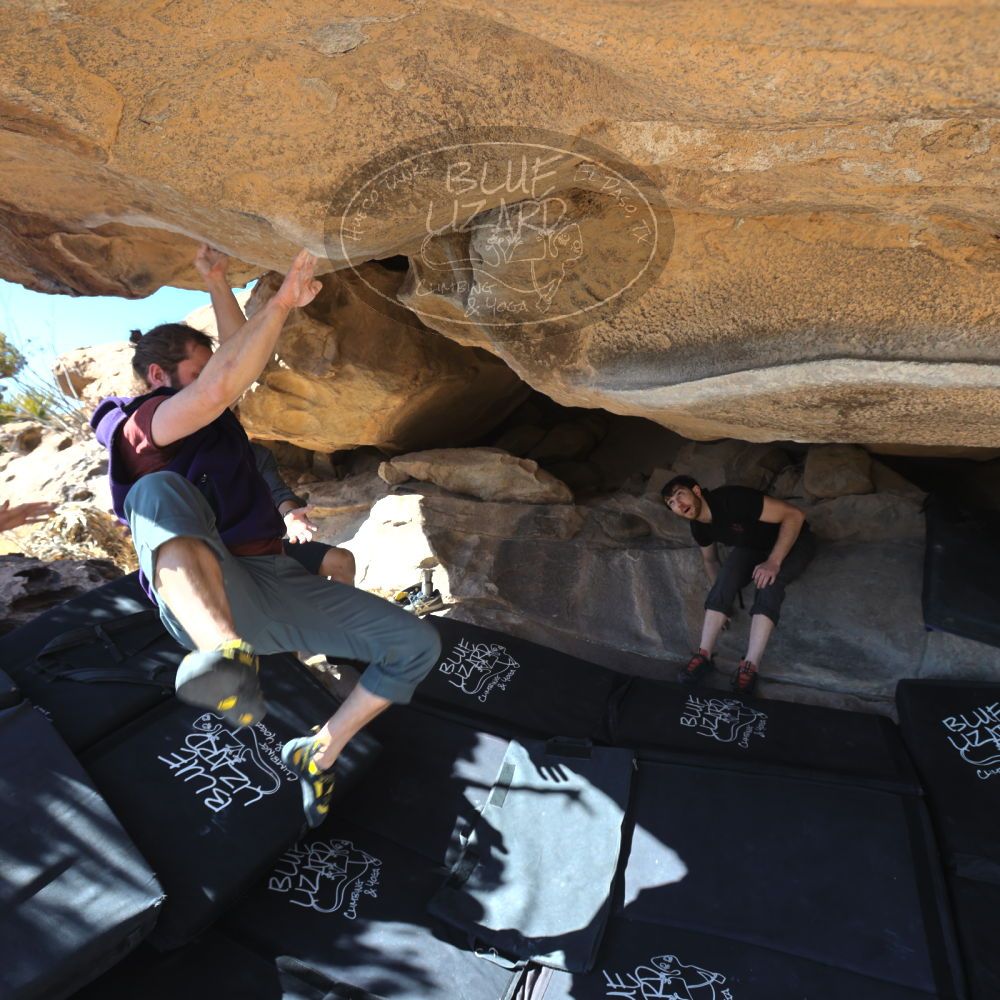 Blue Lizard Climbing and Yoga Hueco Tanks guiding on February 20, 2022, with Cam, Ian, Kamal & Jessica, Mike, and Nick