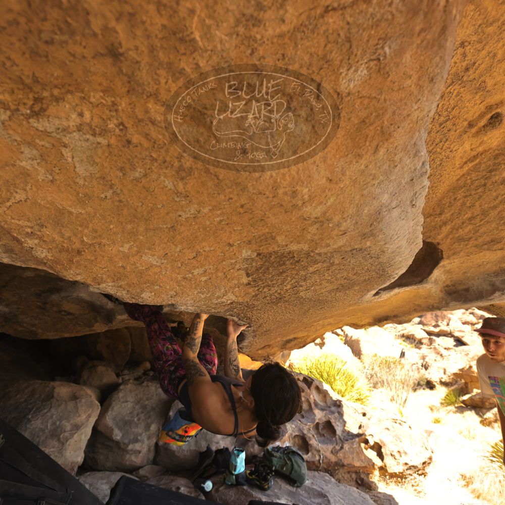 Blue Lizard Climbing and Yoga Hueco Tanks guiding on February 20, 2022, with Cam, Ian, Kamal & Jessica, Mike, and Nick