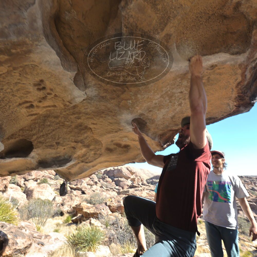 Blue Lizard Climbing and Yoga Hueco Tanks guiding on February 20, 2022, with Cam, Ian, Kamal & Jessica, Mike, and Nick