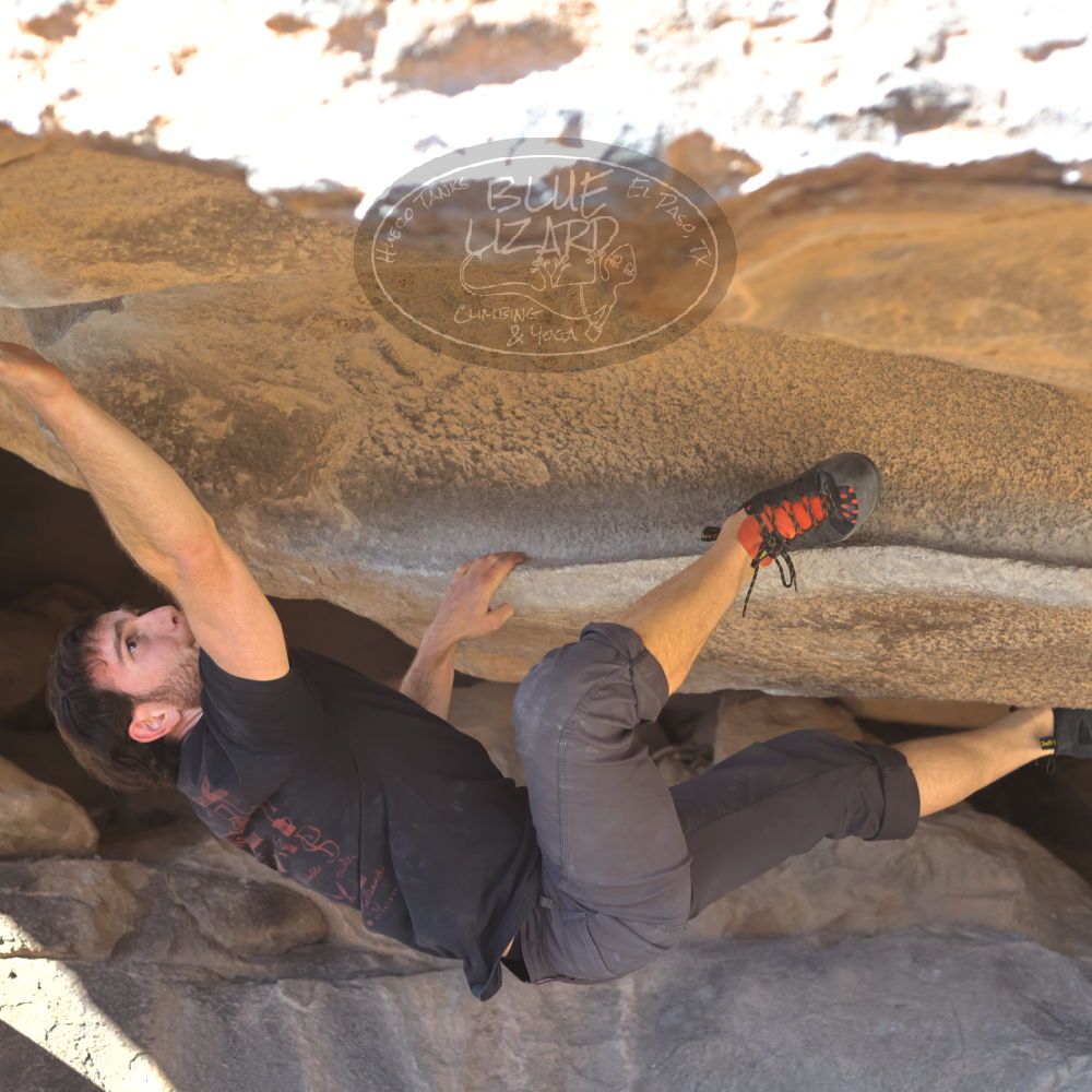 Blue Lizard Climbing and Yoga Hueco Tanks guiding on February 20, 2022, with Cam, Ian, Kamal & Jessica, Mike, and Nick