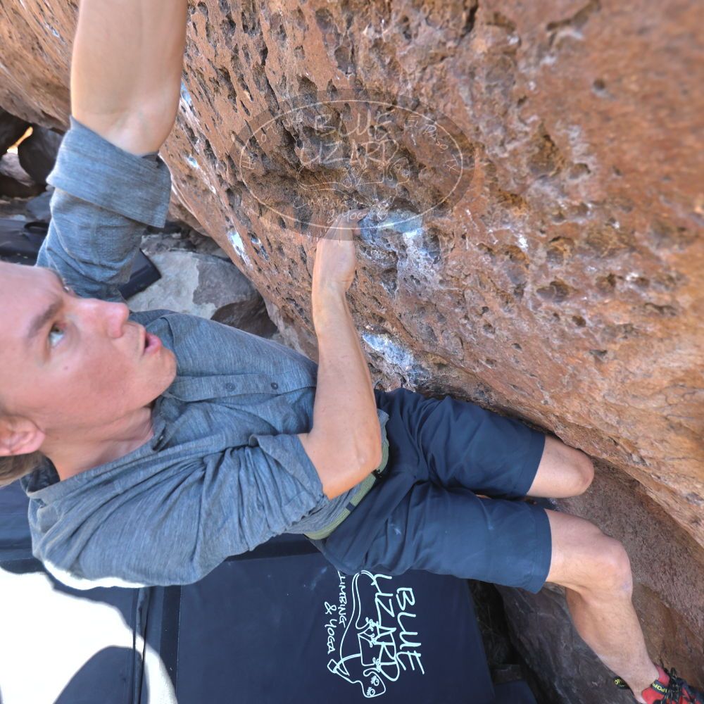 Blue Lizard Climbing and Yoga Hueco Tanks guiding on February 20, 2022, with Cam, Ian, Kamal & Jessica, Mike, and Nick