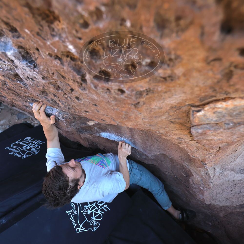 Blue Lizard Climbing and Yoga Hueco Tanks guiding on February 20, 2022, with Cam, Ian, Kamal & Jessica, Mike, and Nick
