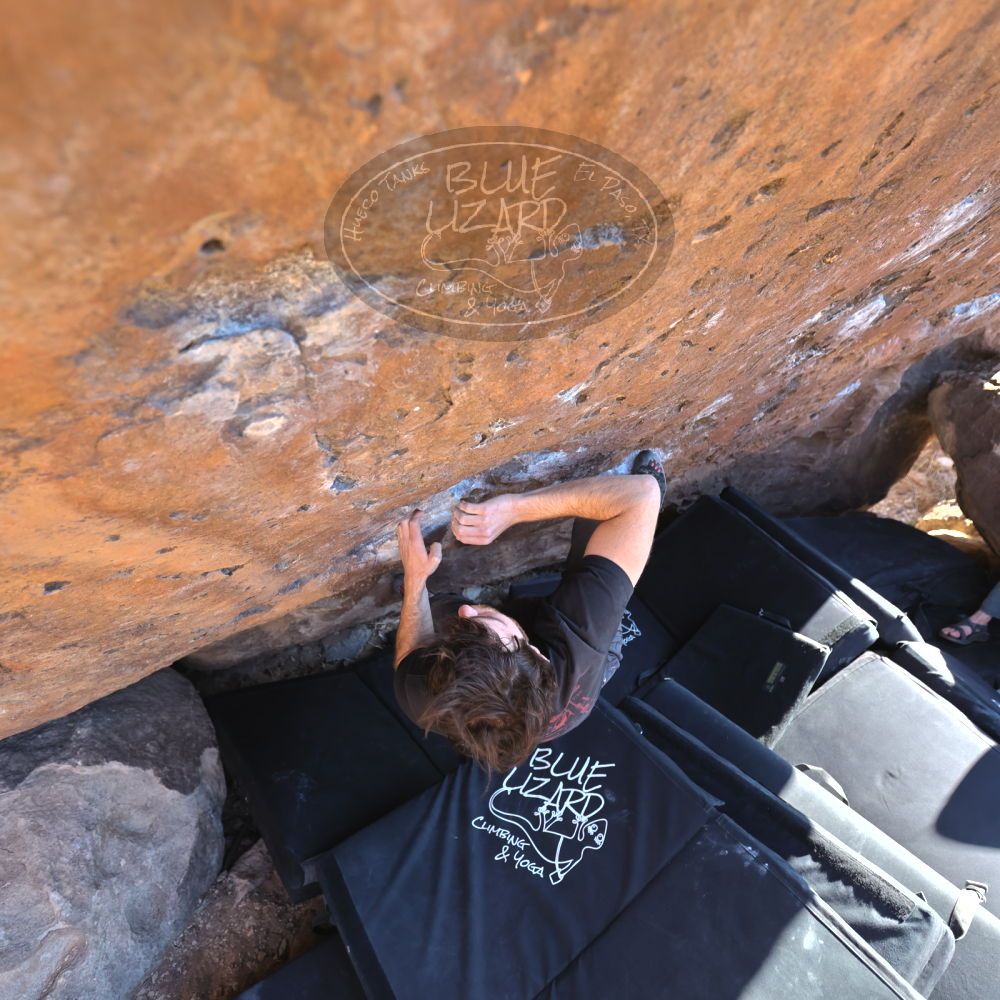 Blue Lizard Climbing and Yoga Hueco Tanks guiding on February 20, 2022, with Cam, Ian, Kamal & Jessica, Mike, and Nick