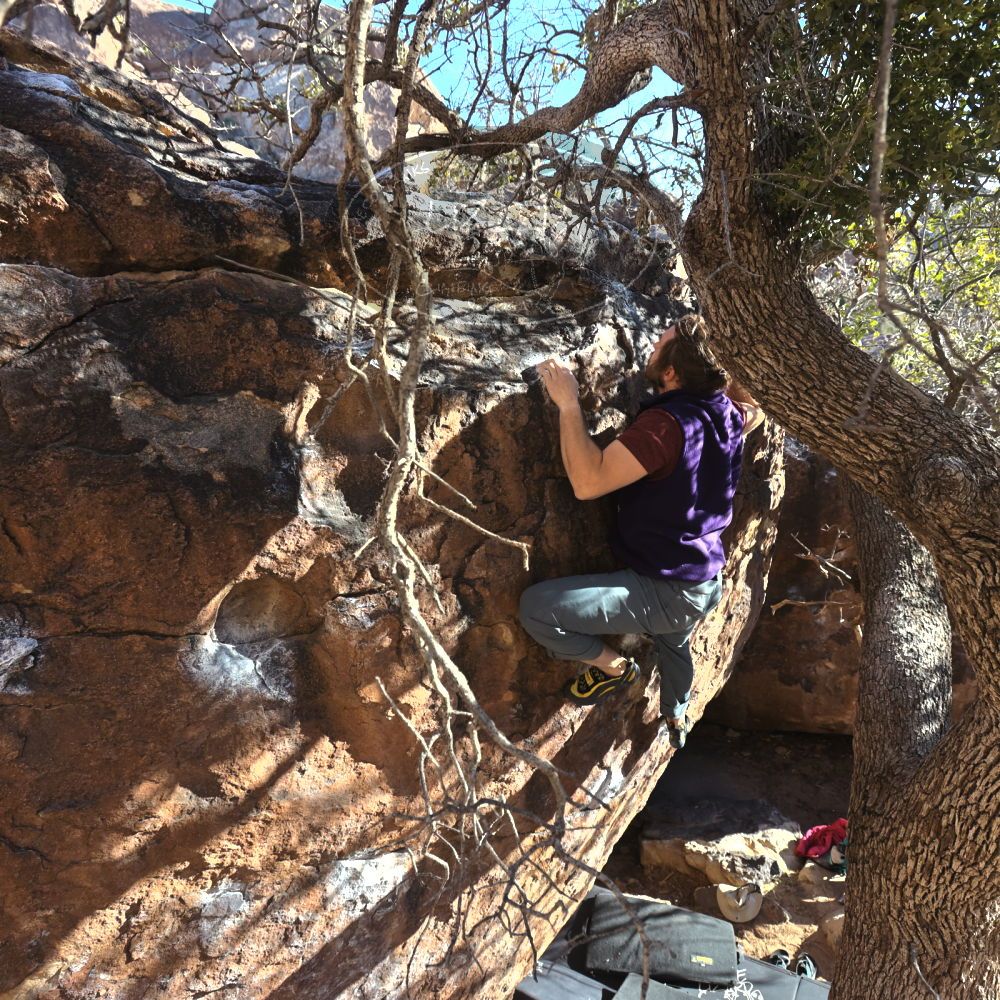 Blue Lizard Climbing and Yoga Hueco Tanks guiding on February 20, 2022, with Cam, Ian, Kamal & Jessica, Mike, and Nick