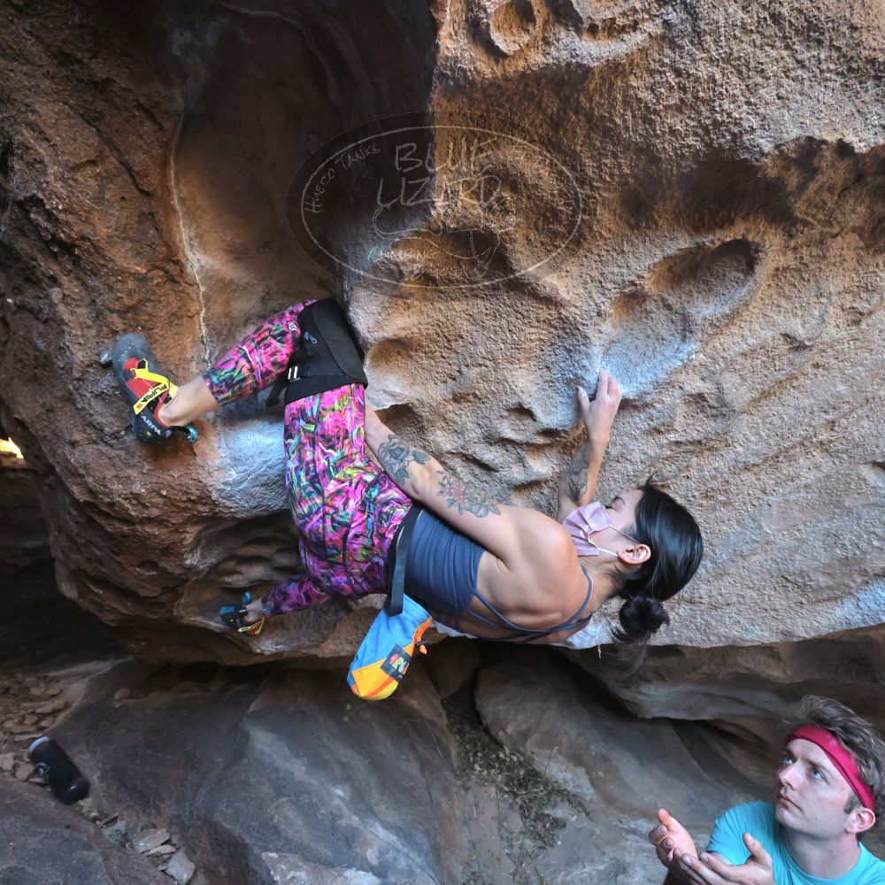 Blue Lizard Climbing and Yoga Hueco Tanks guiding on February 20, 2022, with Cam, Ian, Kamal & Jessica, Mike, and Nick