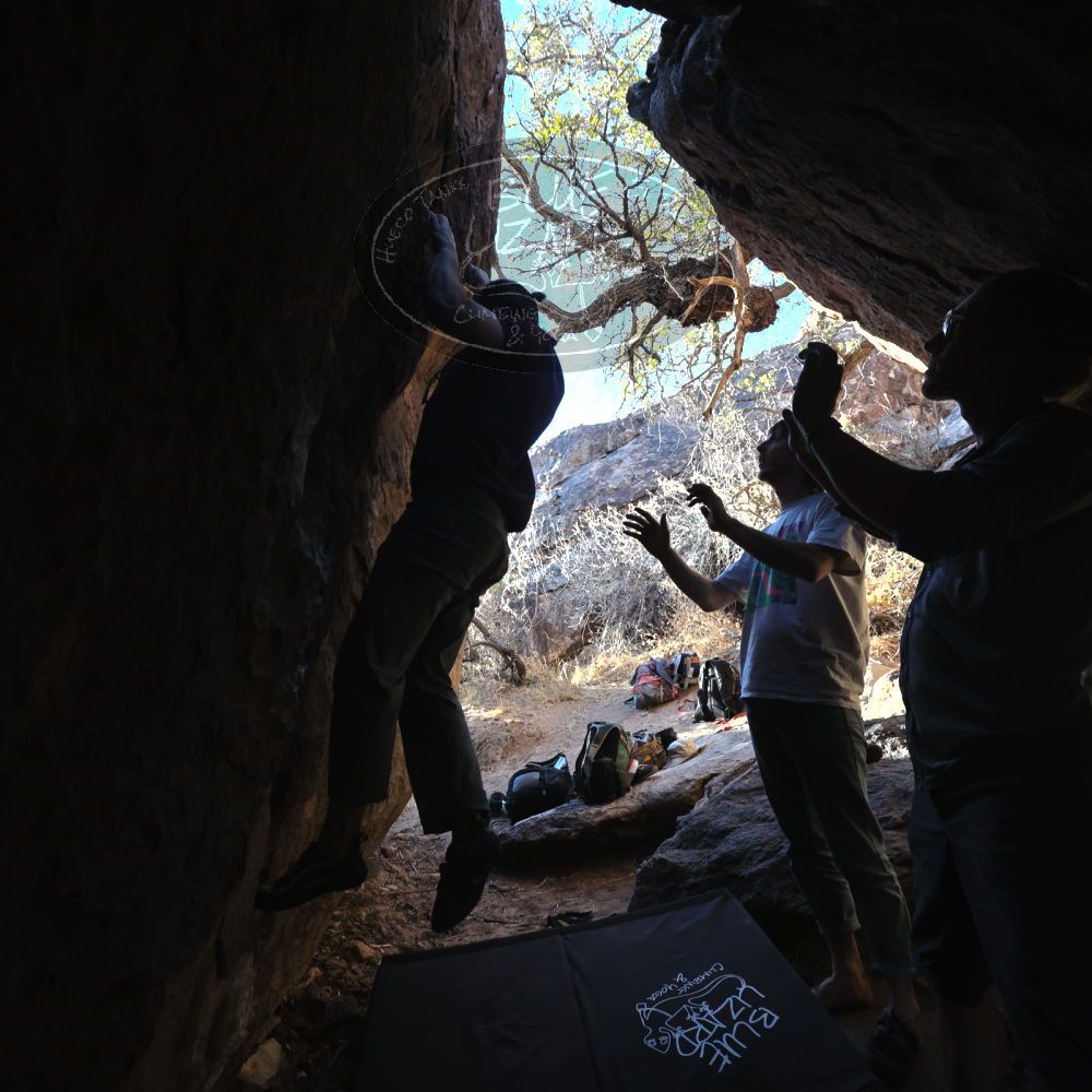 Blue Lizard Climbing and Yoga Hueco Tanks guiding on February 20, 2022, with Cam, Ian, Kamal & Jessica, Mike, and Nick