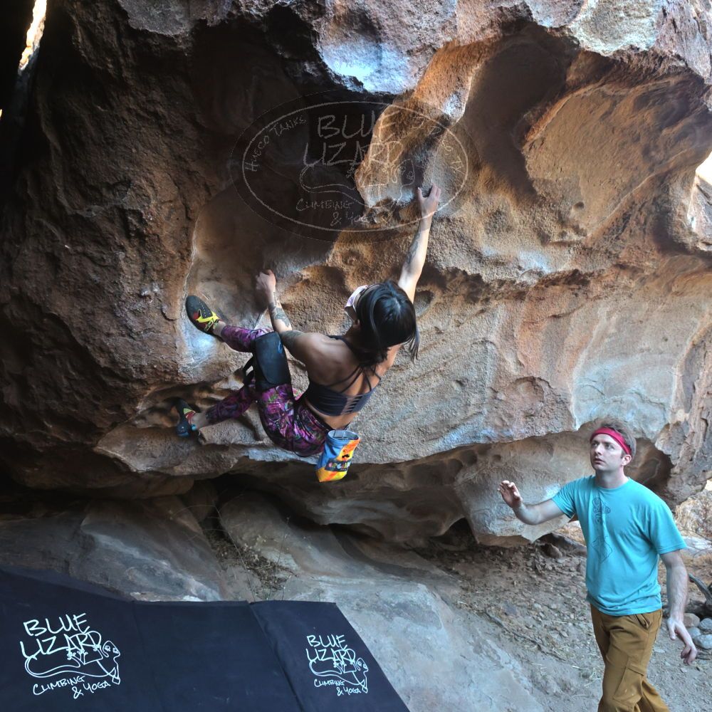 Blue Lizard Climbing and Yoga Hueco Tanks guiding on February 20, 2022, with Cam, Ian, Kamal & Jessica, Mike, and Nick