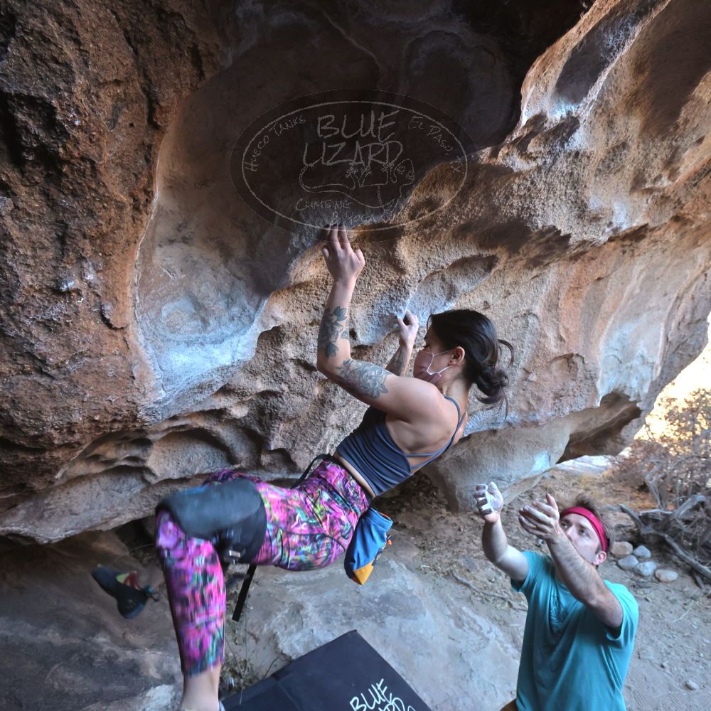 Blue Lizard Climbing and Yoga Hueco Tanks guiding on February 20, 2022, with Cam, Ian, Kamal & Jessica, Mike, and Nick