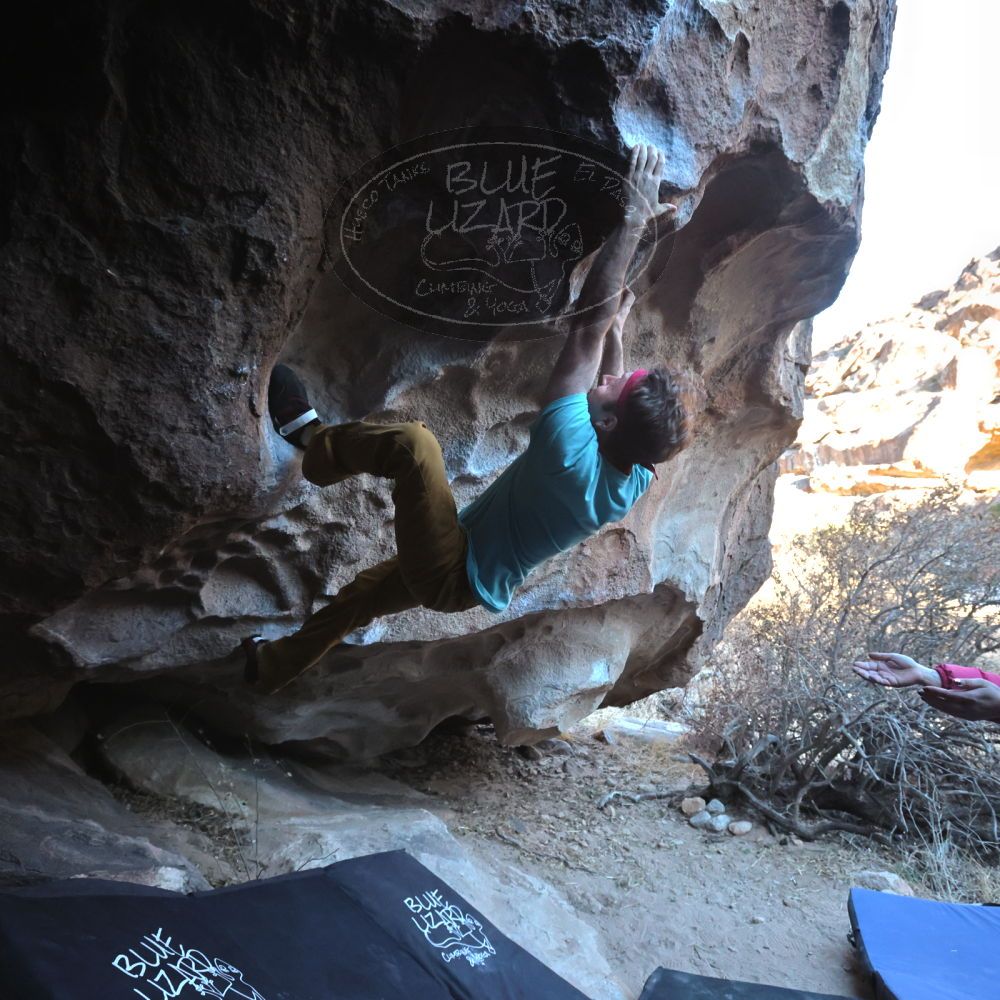 Blue Lizard Climbing and Yoga Hueco Tanks guiding on February 20, 2022, with Cam, Ian, Kamal & Jessica, Mike, and Nick