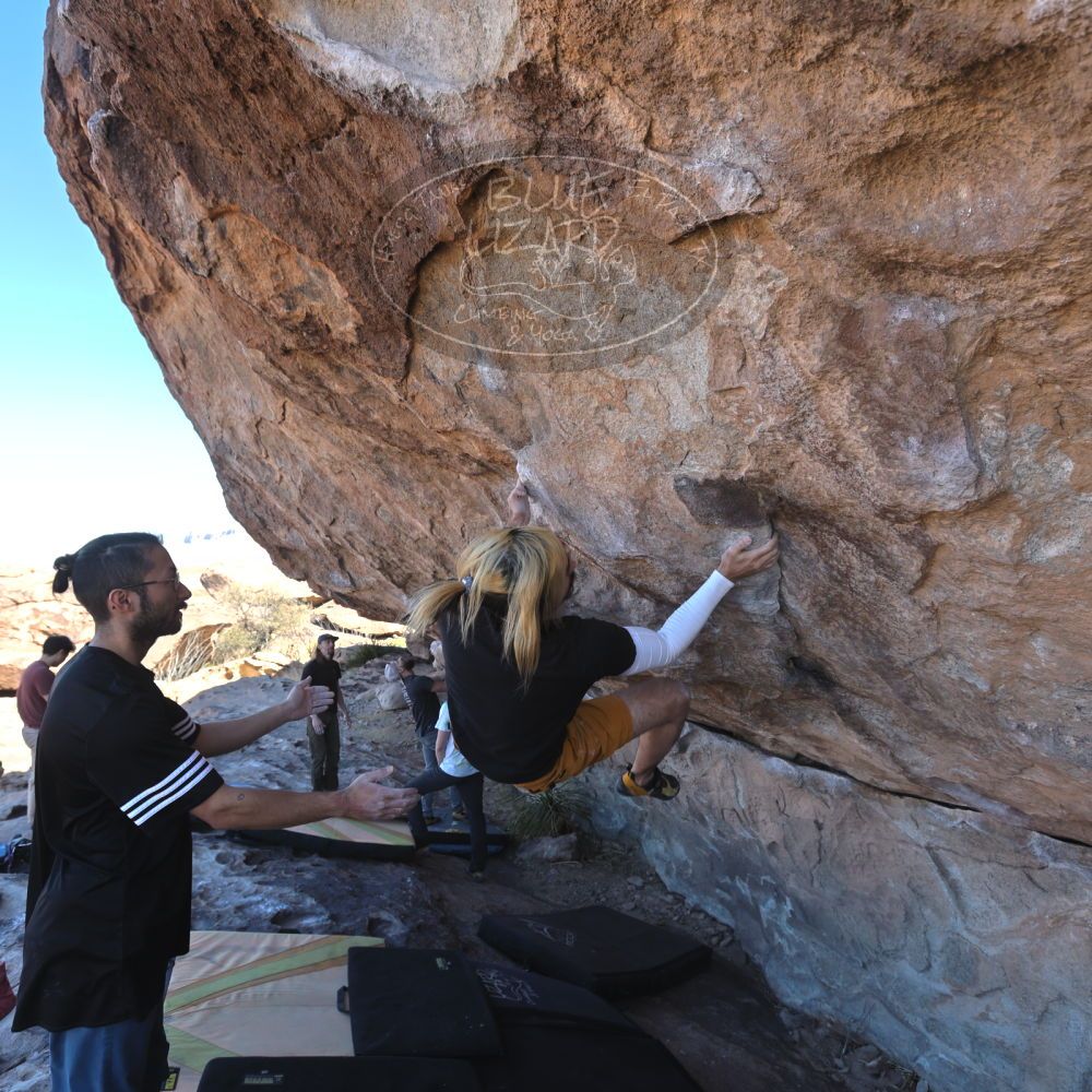 Blue Lizard Climbing and Yoga Hueco Tanks guiding on February 26, 2022, with AJ, Bradley, Caleb, and Chase