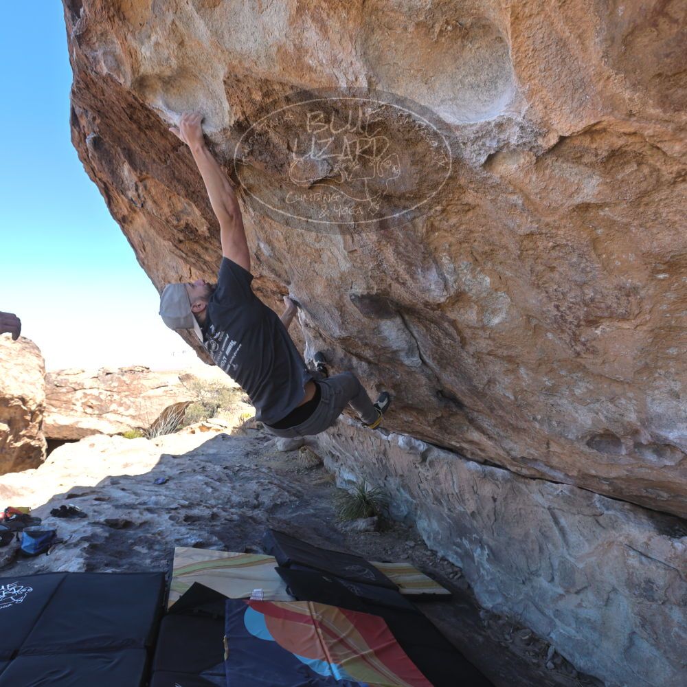 Blue Lizard Climbing and Yoga Hueco Tanks guiding on February 26, 2022, with AJ, Bradley, Caleb, and Chase