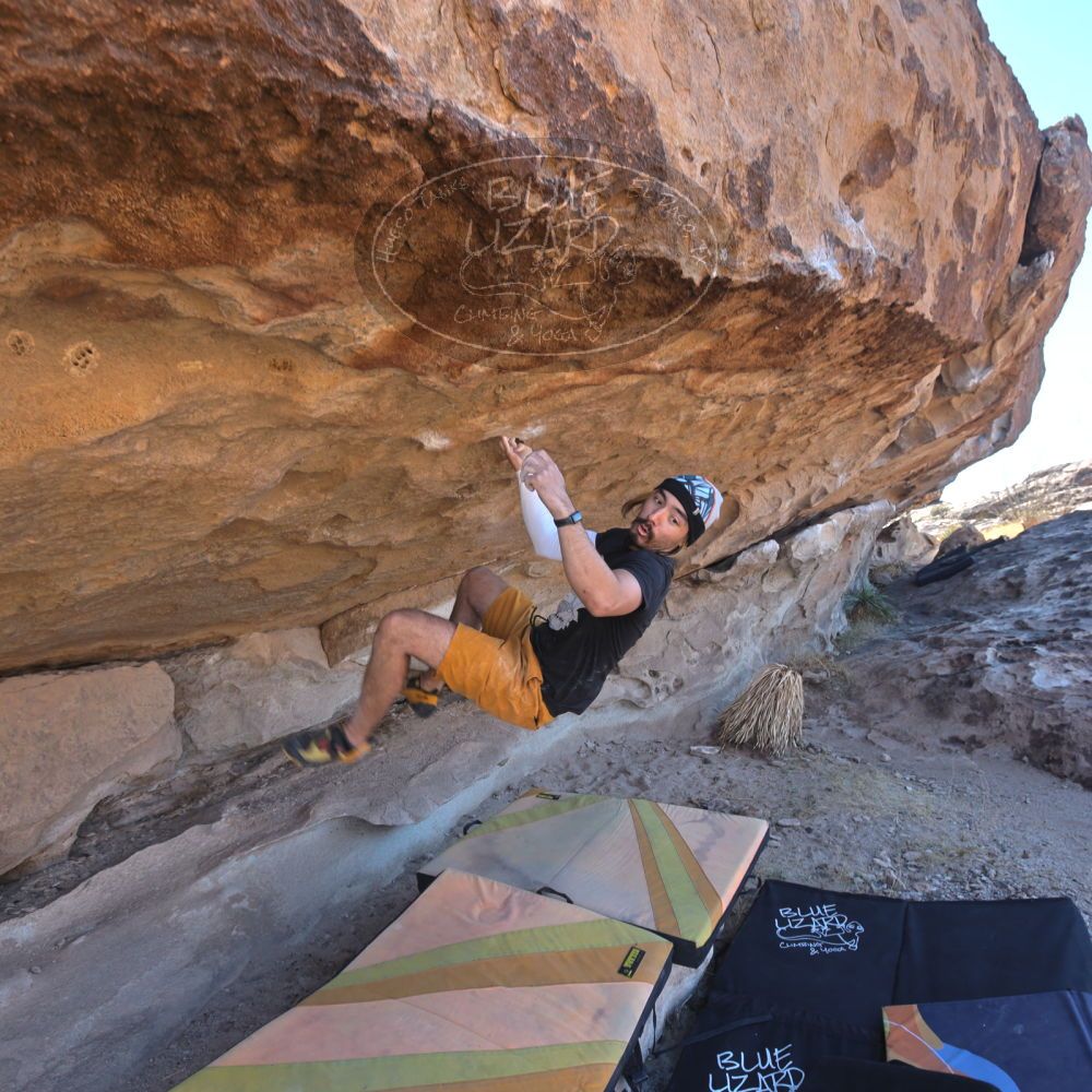 Blue Lizard Climbing and Yoga Hueco Tanks guiding on February 26, 2022, with AJ, Bradley, Caleb, and Chase