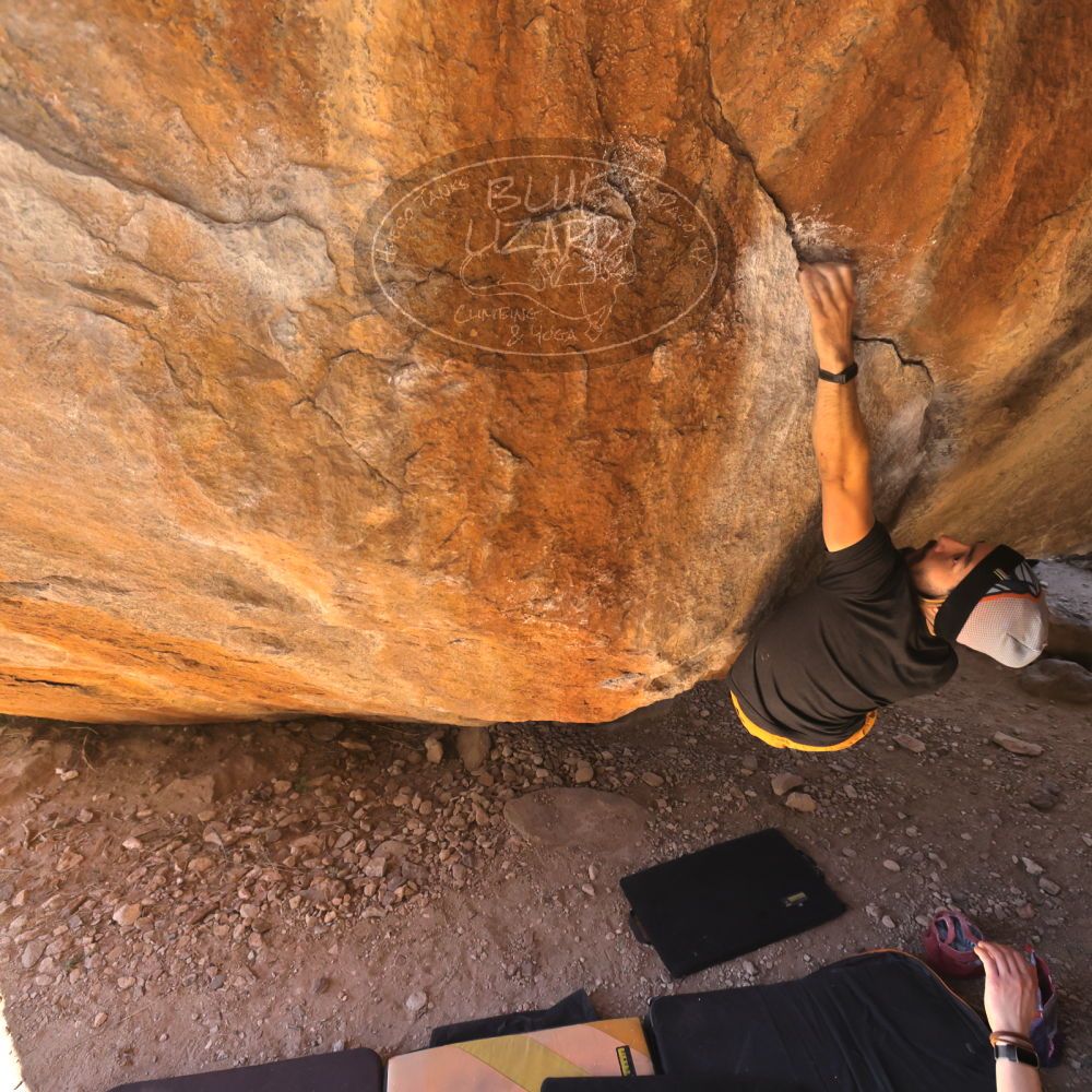 Blue Lizard Climbing and Yoga Hueco Tanks guiding on February 26, 2022, with AJ, Bradley, Caleb, and Chase