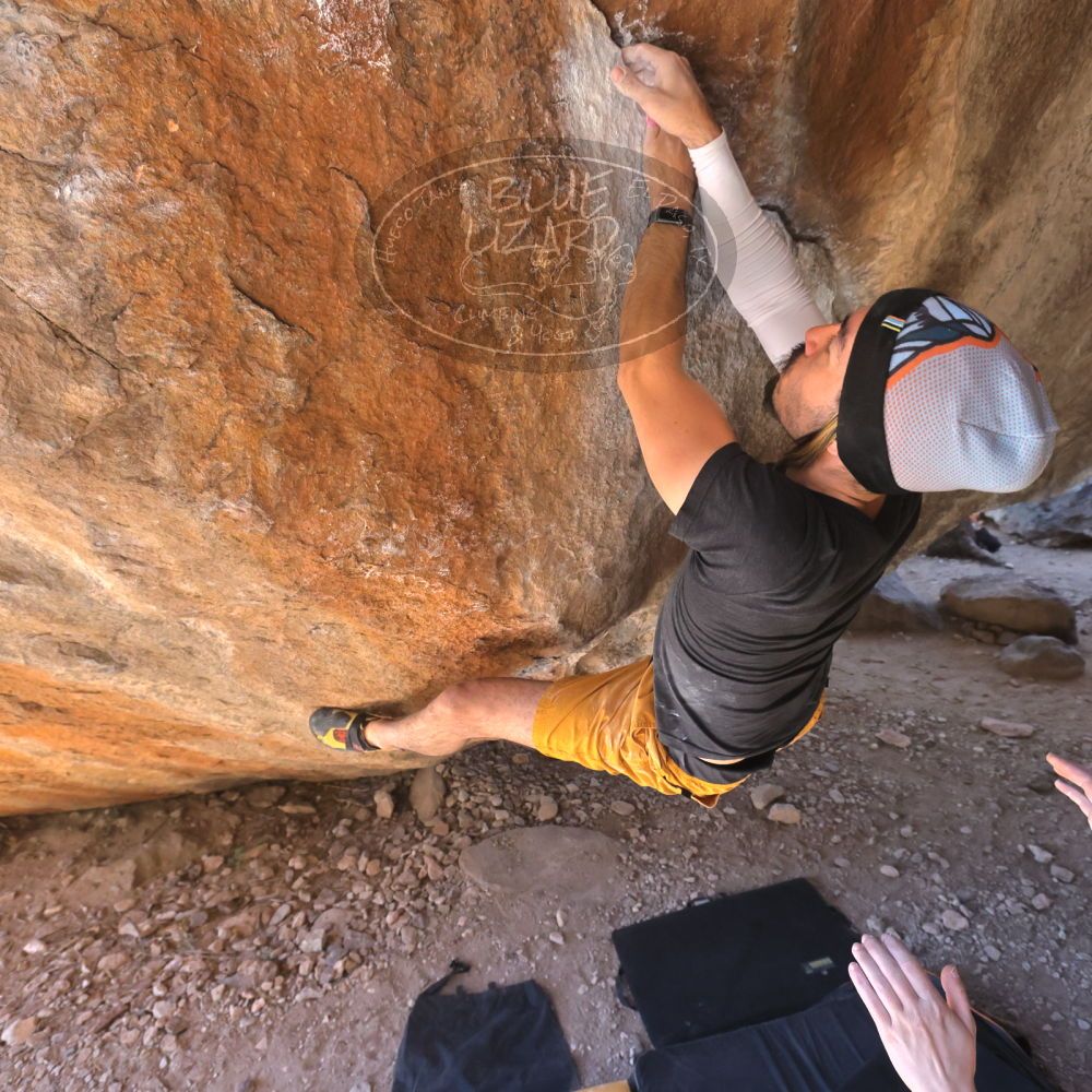 Blue Lizard Climbing and Yoga Hueco Tanks guiding on February 26, 2022, with AJ, Bradley, Caleb, and Chase