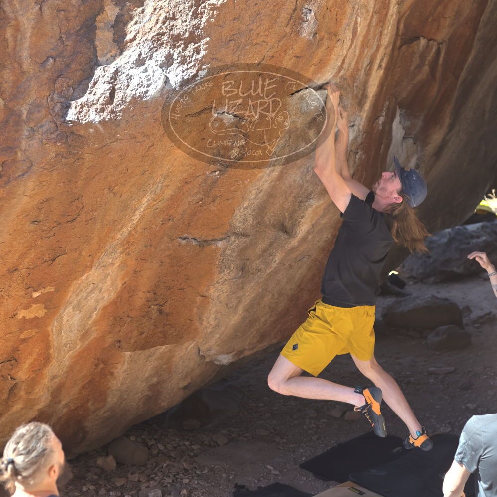Blue Lizard Climbing and Yoga Hueco Tanks guiding on February 26, 2022, with AJ, Bradley, Caleb, and Chase
