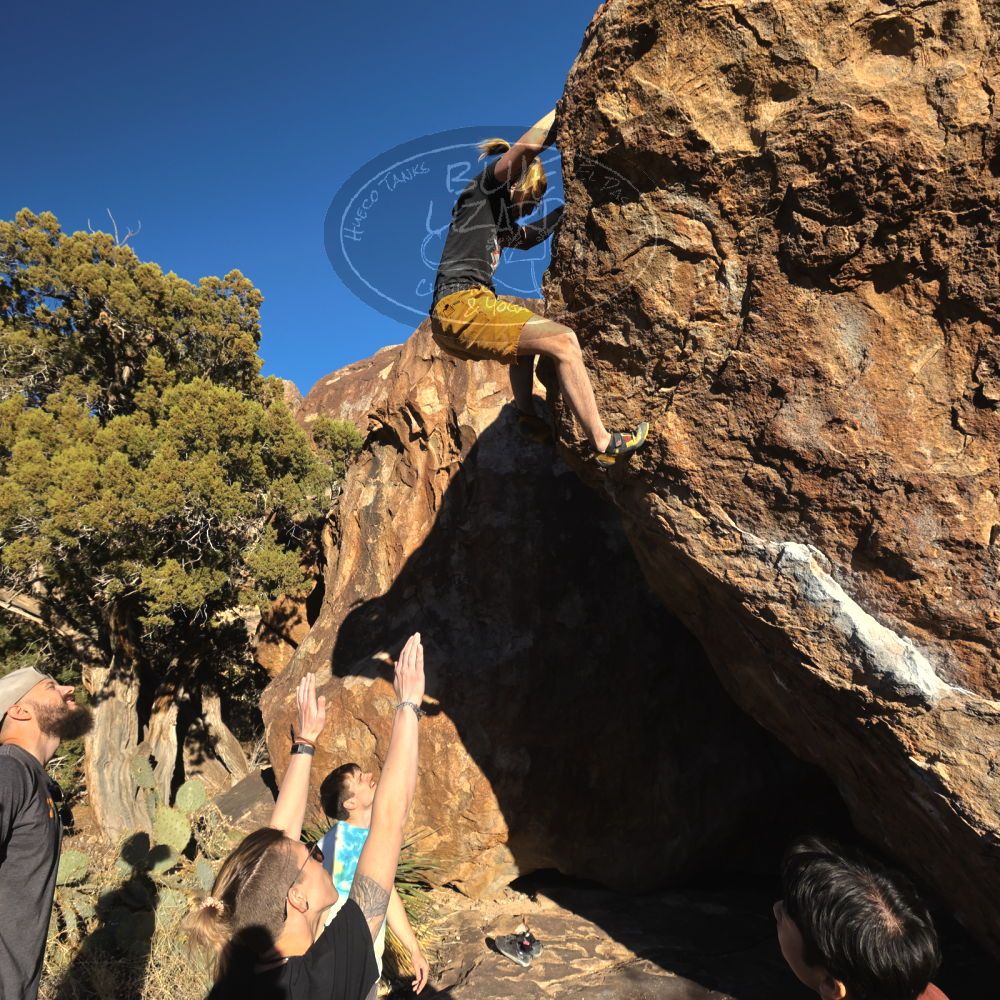 Blue Lizard Climbing and Yoga Hueco Tanks guiding on February 26, 2022, with AJ, Bradley, Caleb, and Chase