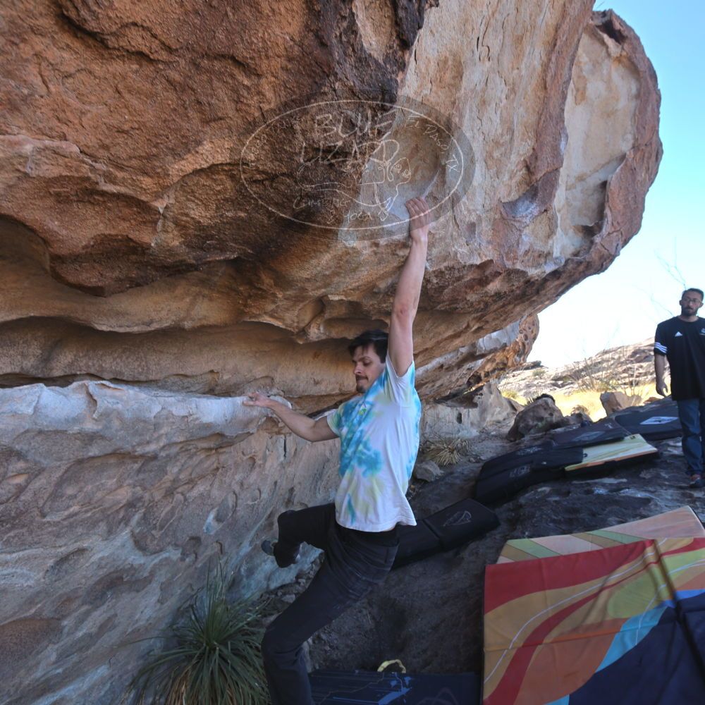 Blue Lizard Climbing and Yoga Hueco Tanks guiding on February 26, 2022, with Emily, Kevin, Mel, Tyre
