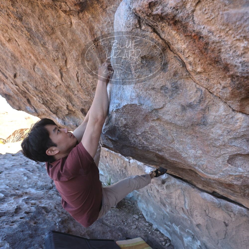 Blue Lizard Climbing and Yoga Hueco Tanks guiding on February 26, 2022, with Emily, Kevin, Mel, Tyre