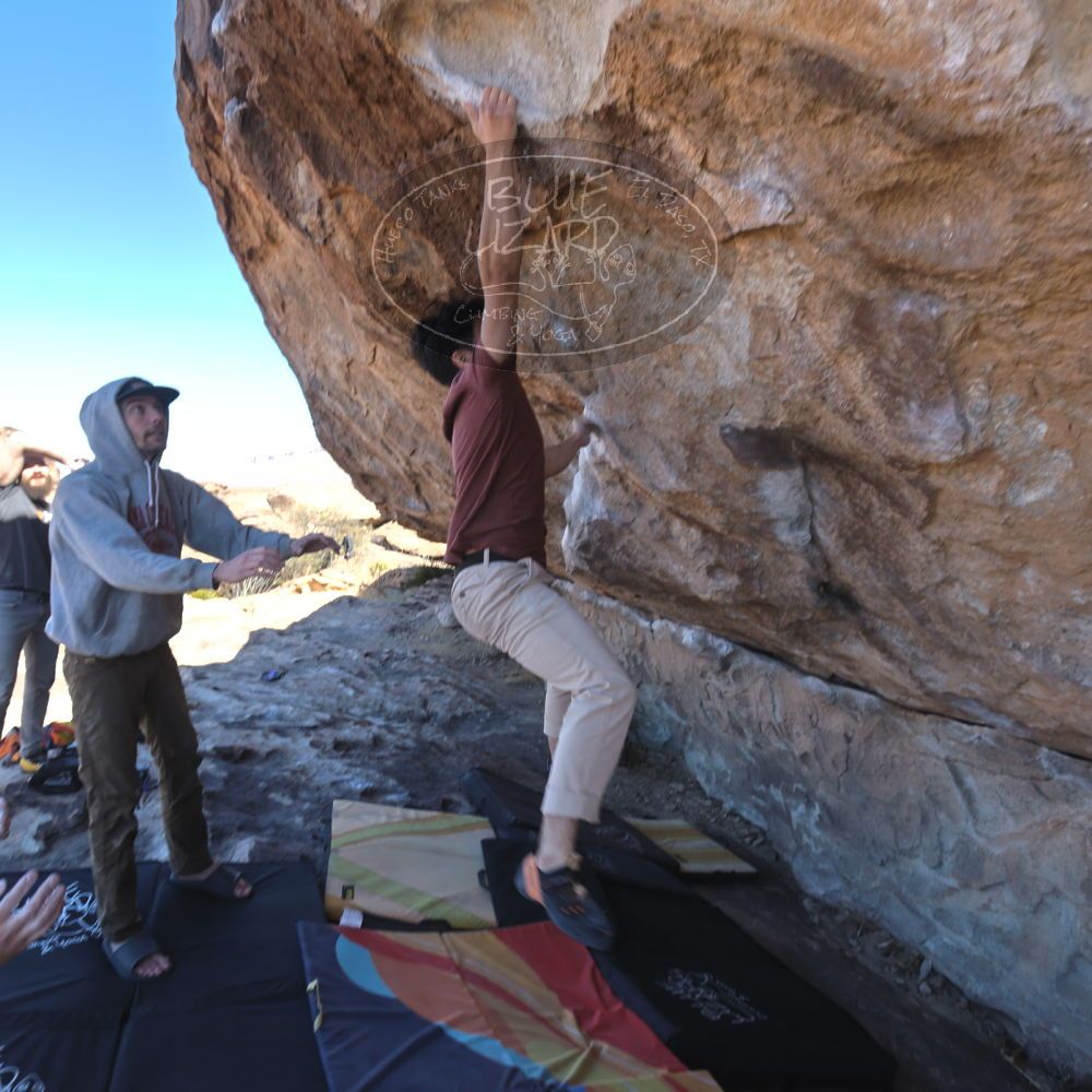 Blue Lizard Climbing and Yoga Hueco Tanks guiding on February 26, 2022, with Emily, Kevin, Mel, Tyre