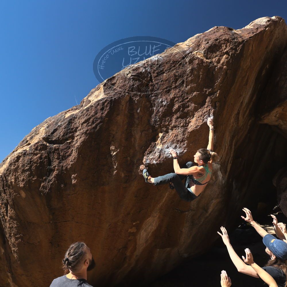 Blue Lizard Climbing and Yoga Hueco Tanks guiding on February 26, 2022, with Emily, Kevin, Mel, Tyre