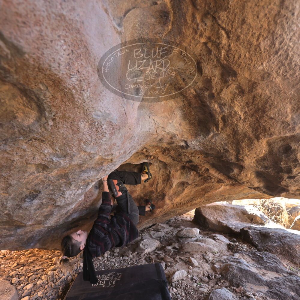 Blue Lizard Climbing and Yoga Hueco Tanks guiding on February 26, 2022, with Emily, Kevin, Mel, Tyre