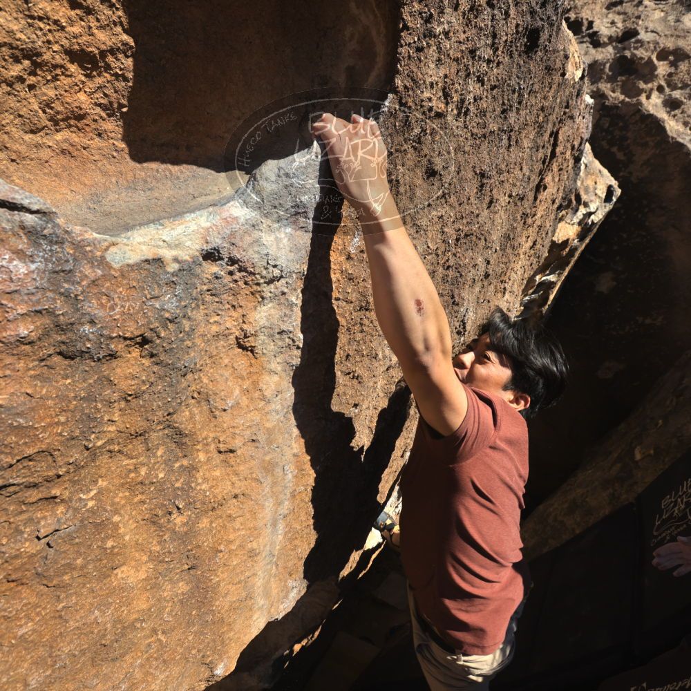 Blue Lizard Climbing and Yoga Hueco Tanks guiding on February 26, 2022, with Emily, Kevin, Mel, Tyre