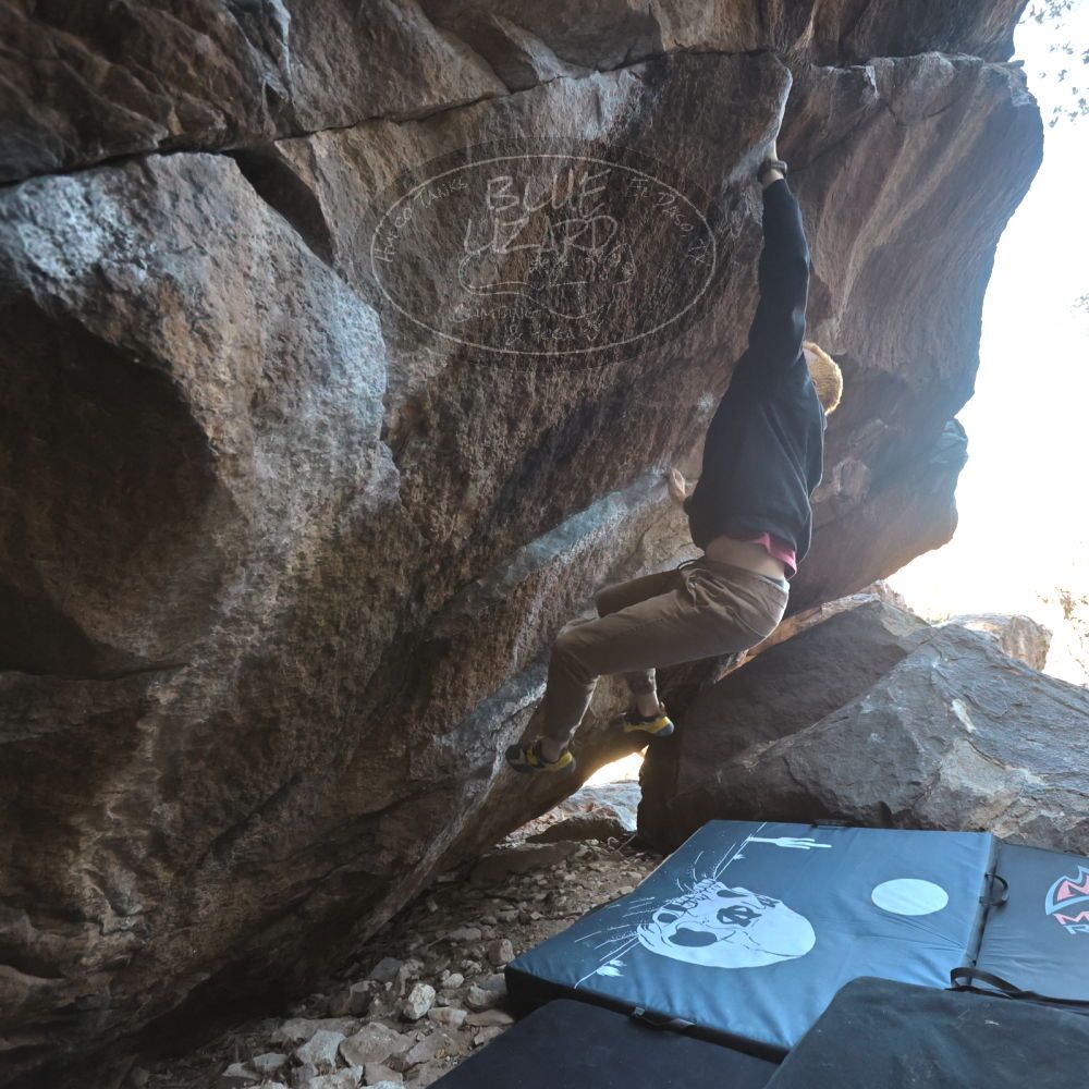Blue Lizard Climbing and Yoga Hueco Tanks guiding on March 19, 2022, with Brock, Drew, Jacob, Ginger, Nic, and Wendy & Trace |